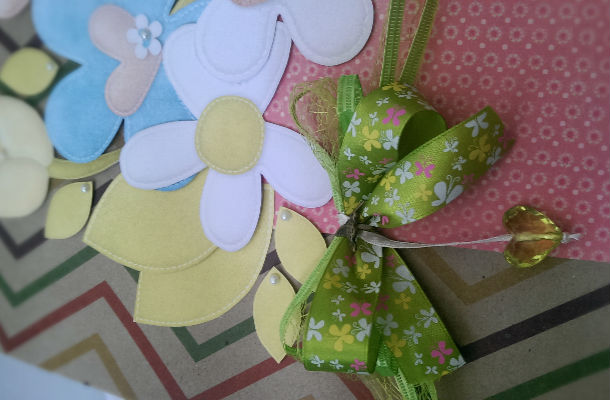 Esta bolsa está elaborada en papel kraft. Es un jarrón de flores elaborado con papeles decorativos y con diminutos detalles que la hacen más elaborada.
