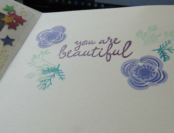 En la parte interior usamos el sello Color Layering Let Love Grow de hero Arts en hermosos colores pasteles.