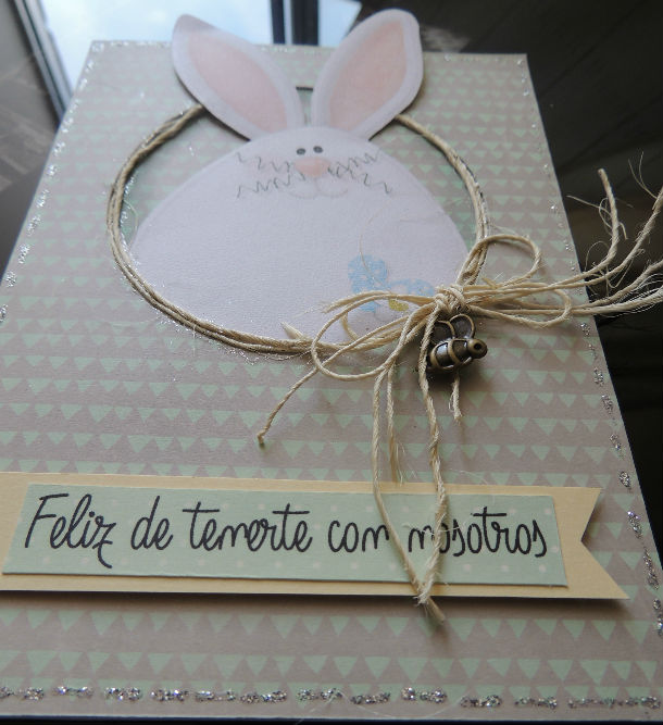 Esta hermosa tarjeta usa una imagen de la colección Hoppy Hearts de NitWit Collections.